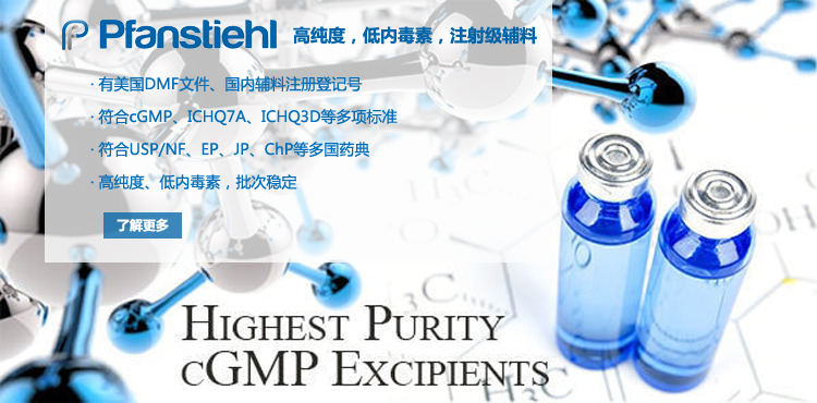 “熱烈祝賀Pfanstiehl的注射級(jí)甘氨酸Glycine(G-140)喜獲CDE登記號(hào)F20250000403, 這是Pfanstiehl產(chǎn)品獲得的第18個(gè)CDE登記號(hào)!”甘氨酸在醫(yī)藥輔料制劑中應(yīng)用廣泛,, 可作為緩沖劑,增溶劑,穩(wěn)定劑等,具有諸多優(yōu)勢(shì)。Pfanstiehl秉承一貫高品質(zhì)理念,為滿足全球生物制藥行業(yè)對(duì)于高品質(zhì)甘氨酸的需求,隆重推出的注射級(jí)甘氨酸Glycine (G-140), 具有超高純度,超低內(nèi)毒素,超低金屬殘留的特點(diǎn),單獨(dú)檢測(cè)29種金屬離子,并且新增DNA,RNA,DNA酶,RNA酶和脂肪酶,亞硝酸鹽等多項(xiàng)質(zhì)量指標(biāo)的檢測(cè),符合多國(guó)藥典規(guī)定(USP, EP, BP, JPE, ChP),可用于生物治療性藥物和疫苗的生產(chǎn)。產(chǎn)品信息:· 產(chǎn)品名稱:Glycine, High Purity, Low Endotoxin, Low Metals, USP, EP, BP, JPE, ChP (G-140)· 中文名稱:甘氨酸· 分子式:C2H5NO2· 分子量:75.07 g / mol· CAS號(hào):56-40-6· 產(chǎn)品貨號(hào):G-140產(chǎn)品特點(diǎn): · 超高純度,超低內(nèi)毒素,超低微生物含量,超低金屬雜質(zhì)殘留· 質(zhì)量指標(biāo)新增DNA,RNA,DNA酶,RNA酶,脂肪酶和亞硝酸鹽檢測(cè)· 符合多國(guó)藥典:USP, EP, BP, JPE, ChP· 符合ICH Q3D標(biāo)準(zhǔn)· 符合GMP標(biāo)準(zhǔn)· 已獲DMF和CDE登記號(hào) 產(chǎn)品應(yīng)用:· 緩沖劑· 穩(wěn)定劑· 增溶劑如果您對(duì)Pfanstiehl注射級(jí)別Glycine G-140感興趣,歡迎聯(lián)系Pfanstiehl 中國(guó)區(qū)代理商北京西美杰科技有限公司獲得如下詳細(xì)的產(chǎn)品概況說(shuō)明文件和測(cè)試樣品。Pfanstiehl Inc.最新產(chǎn)品系列如下,歡迎聯(lián)系北京西美杰科技有限公司獲取100g裝免費(fèi)樣品。北京西美杰科技有限公司為Pfanstiehl中國(guó)代理,為客戶提供完善的技術(shù)支持與售后服務(wù)。歡迎撥打西美杰客服電話400-050-4006或者登陸網(wǎng)站www_xmjsci_com.lsxssjx.com了解更多信息。 更多>